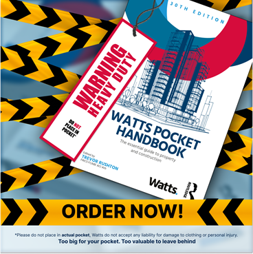 Watts is pleased to announce the release of the 30th edition of the Watts Pocket Handbook, now available to order via the Routledge website. Watts Pocket Handbook: The Essential Guide to Property and Construction.